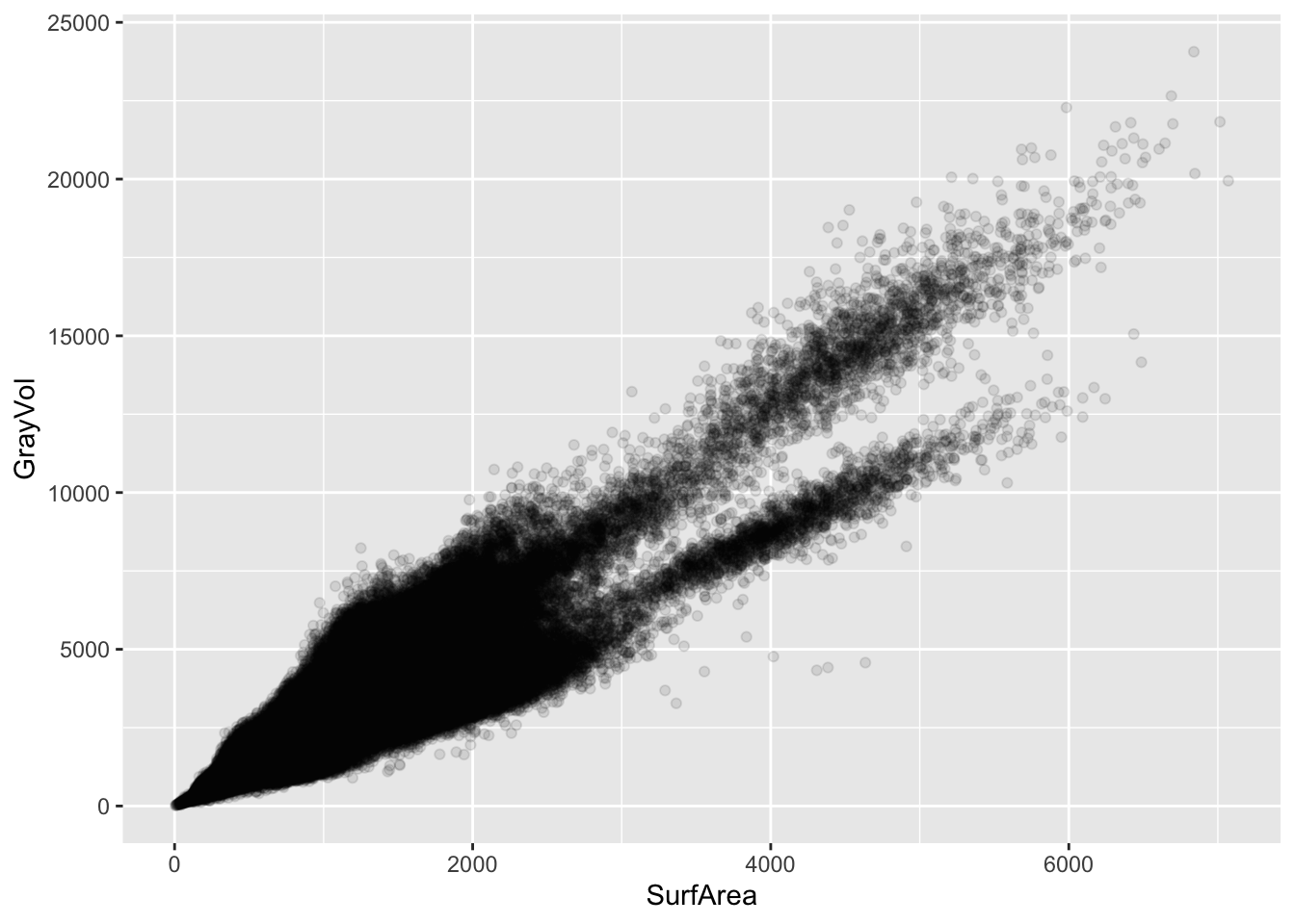 ggplot(aes(x = SurfArea, y = GrayVol)) +